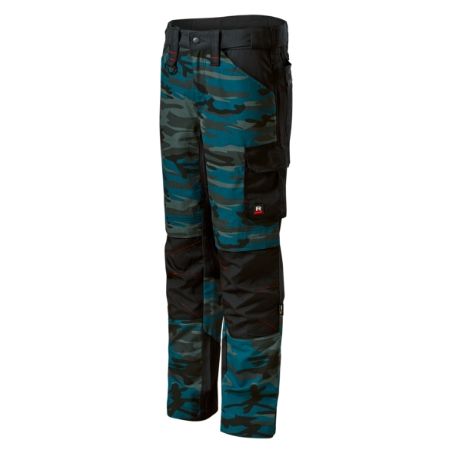Plátnová vazba, 65 % polyester, 35 % bavlna, nešpinivá úprava CORDURA® 100 % polyamid. povrchová úprava odpuzující nečistotu, tvarovaný elastický pasový límec , klín v rozkroku s 6 % elastanu, 10 multifunkčních kapes, kapsy pro vložení chráničů kolen, odvětrávání v zadní části kolen, plastové "D" poutko, poutko na kladivo, vysoce odolný materiál CORDURA® v barvě 01, kontrastní prvky, možnost prodloužení délky nohavic, certifikace dle normy EN ISO 13688, EN 14404 + A1 (typ 2, úroveň 1) v kombinaci s chrániči kolen A99